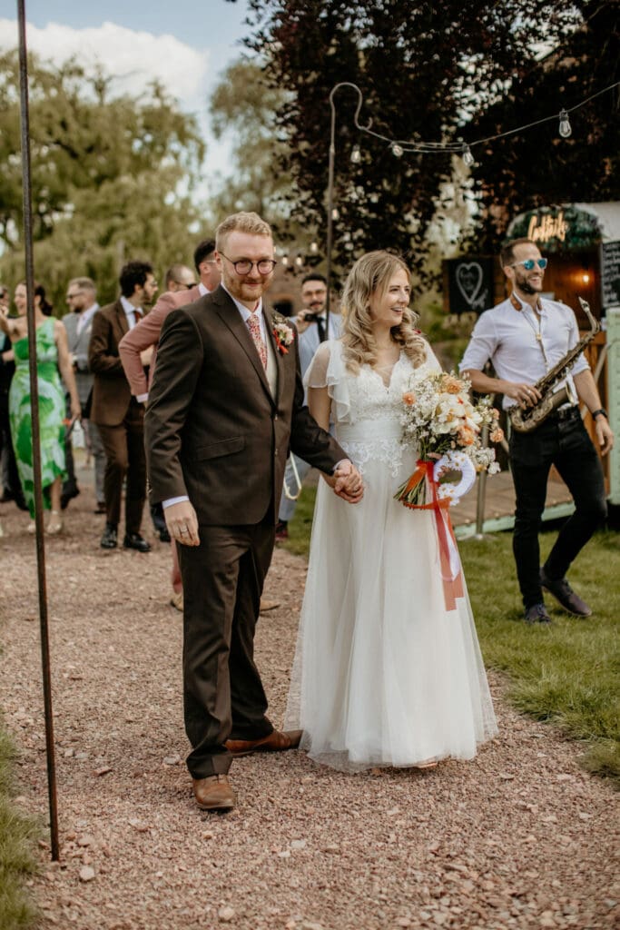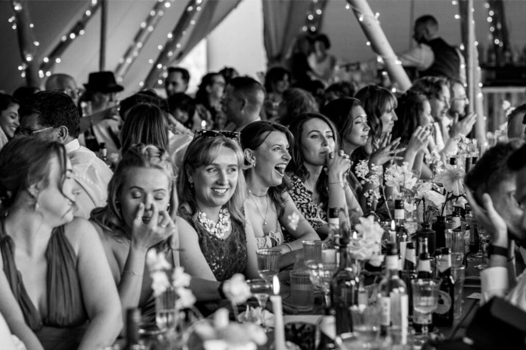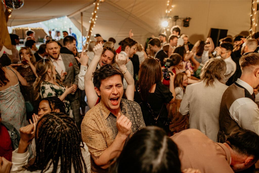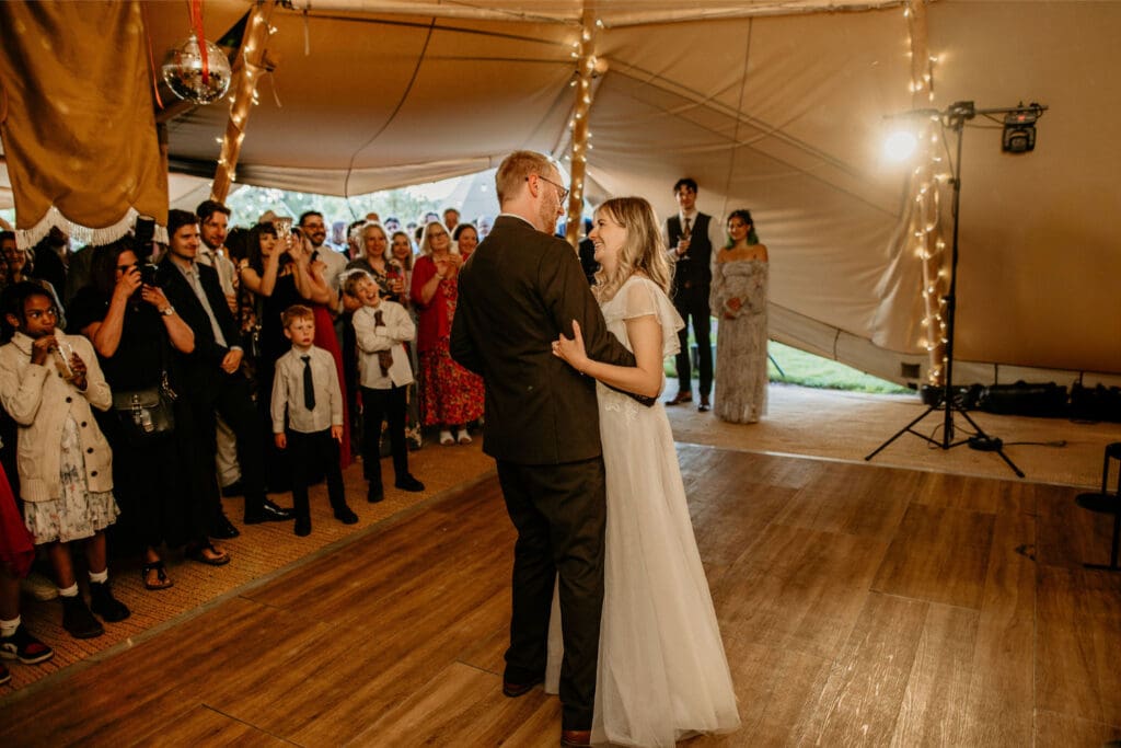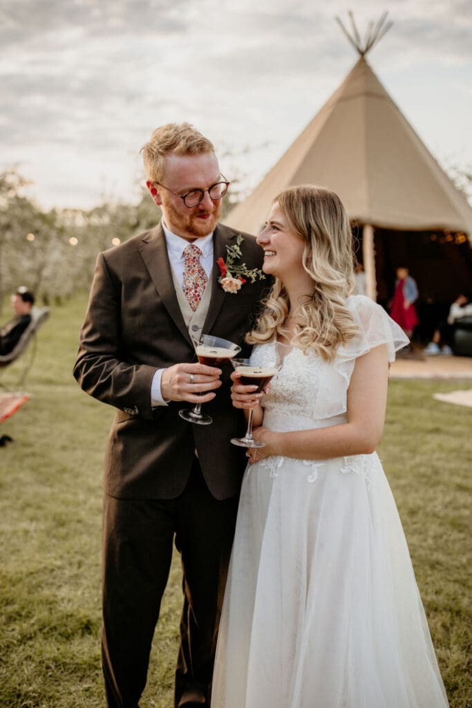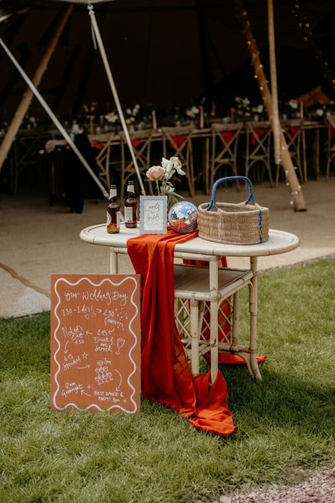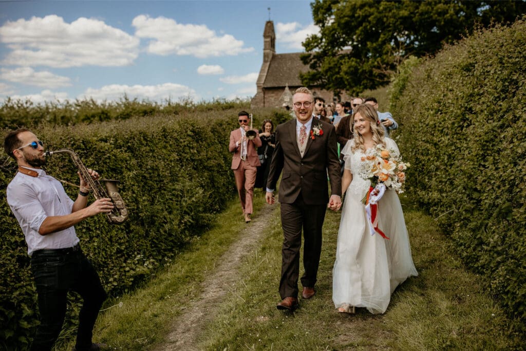 The atmosphere was elevated even further by the incredible Supertonic band, with live trombone and sax serenading guests from the church to the tipis for the arrival drinks-yes it was as epic as it sounds. And just when you thought it couldn’t get any better, the evening turned into an intimate acoustic set for the final hour, with guests joining in-led by the guitar-playing groom himself. A celebration that was equal parts stylish, soulful, and completely unique.