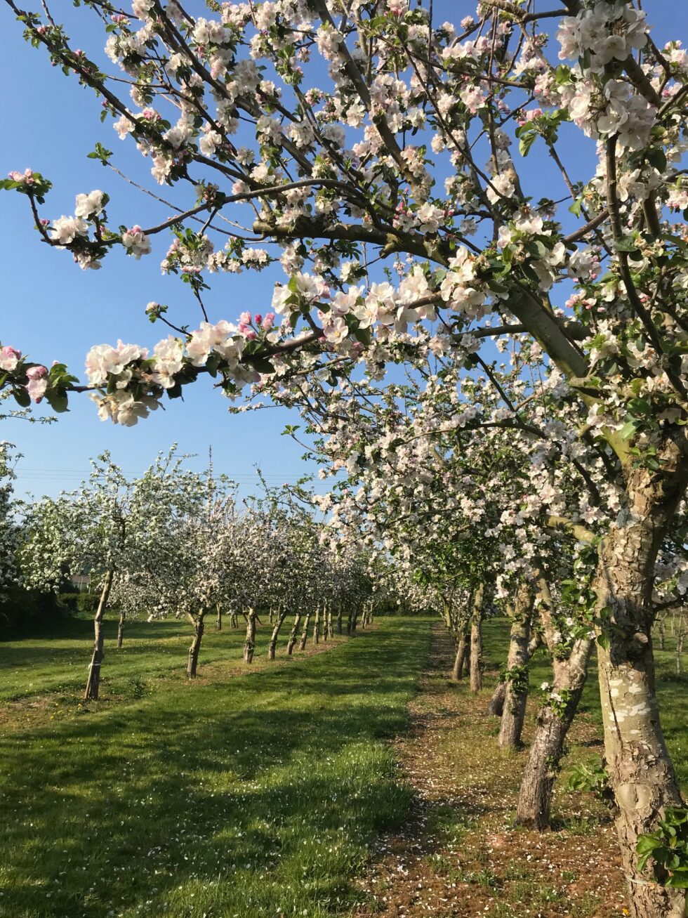 Orchards are naturally beautiful places. It must be something to do with the still, ordered rows of trees providing such a sense of calm. What’s more, every season in an orchard offers something equally stunning – whether it’s the impossibly beautiful blossoms in May, the rich verdant greens as the trees come into full leaf in June and July, or the rich colours of the apples hanging from the trees in August and September.