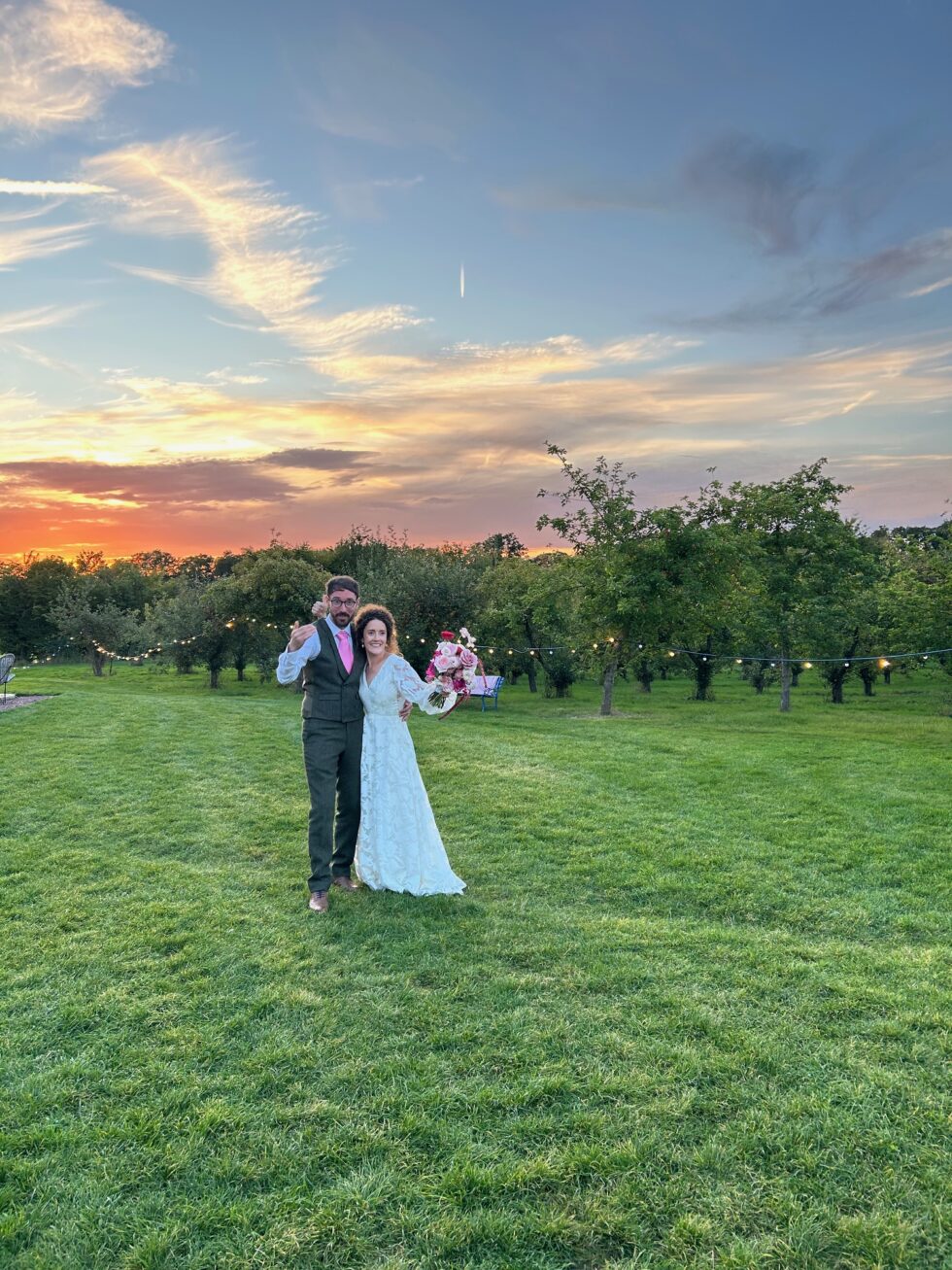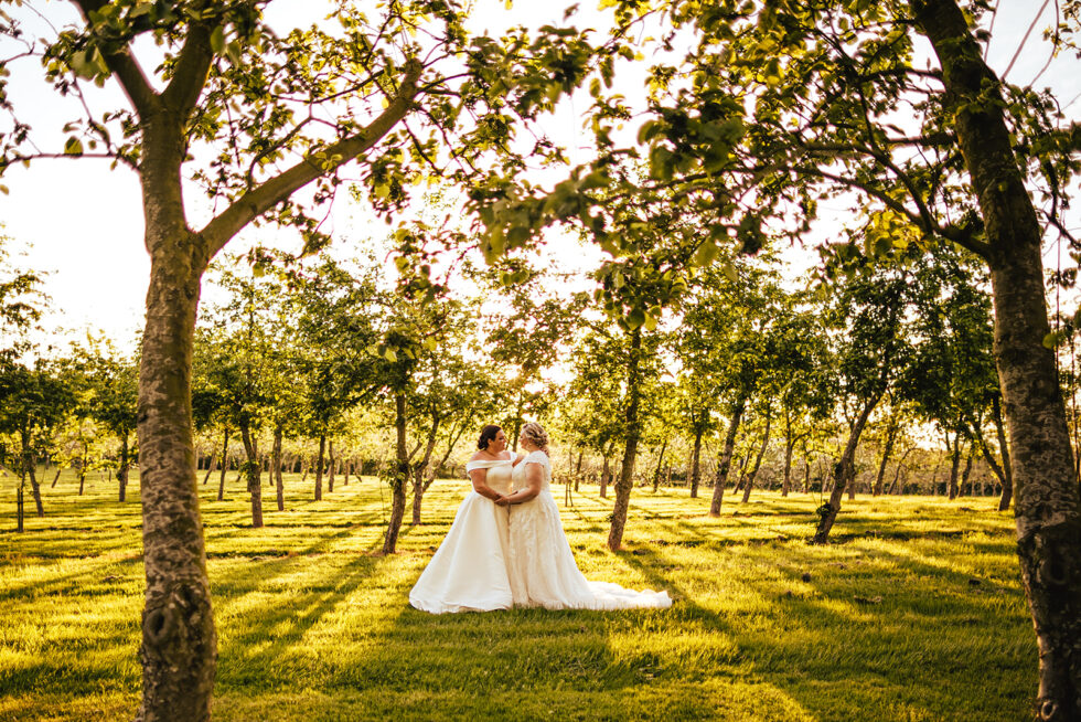 Every wedding needs great photos and an orchard provides countless stunning backdrops. Rows of blossom-laden trees, sun-dappled leaves, our picturesque pond, or the open countryside surrounding the orchard… every angle provides breathtaking shots. Golden hour just before sunset is especially beautiful, casting warming tones through the branches and creating naturally atmospheric photos.